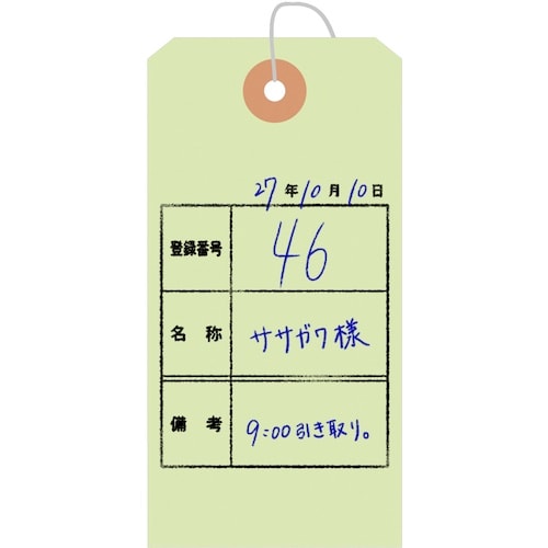 ササガワ カラー荷札 大 黄緑 一穴