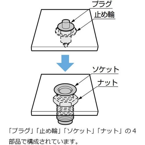 ロックおよびロック解除ともに、プラグの頭を押すだけのワンタッチ操作です。ロック時にプラグの頭が誤解除防止のためフラットになります。解除する場合、先のとがったもので押してください。 |