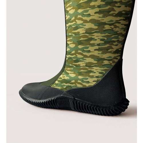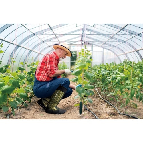 伸縮性の高い合成ゴム生地を使用しており柔軟性がよく、足首の自由度が高い。軽くて長時間の作業でも疲れにくい長靴です。