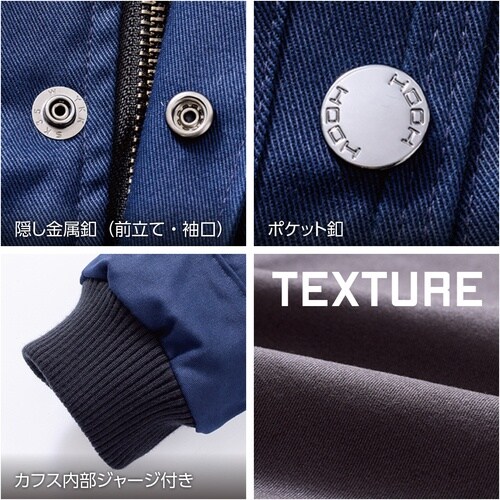 保温性に優れた裏アルミで暖かさをキープします。表地は動きやすくなめらかでソフトな綿素材使用シーンを選ばないシンプルなデザインです。前面ファスナーが表に出ないヒヨク式です。外作業に。防寒着に。