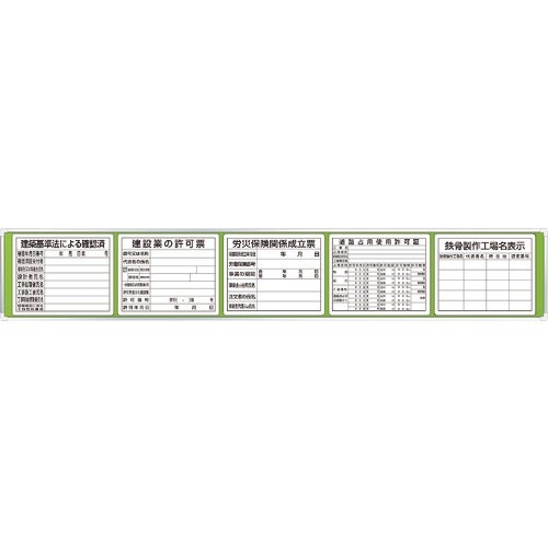 工事現場で必要な法令許可票を見やすく整然と掲示できる取り付けベースに標識をセットしています。工事現場の仮囲いへの掲示に最適です。法的必需品です。 |