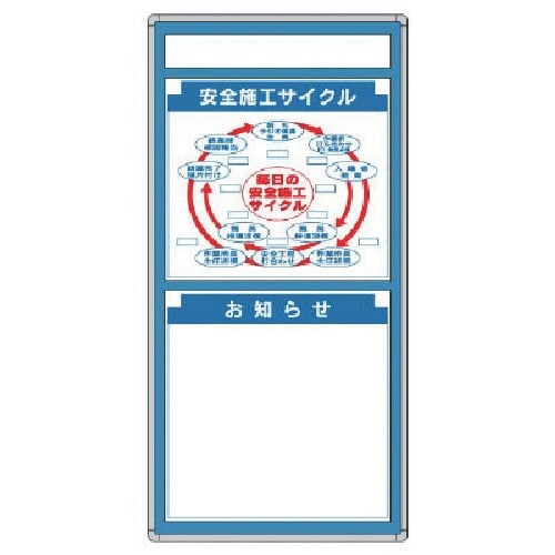 標識と木製ベースをセットした組み合せタイプ掲示板です。工事現場での朝礼看板として最適です。 |