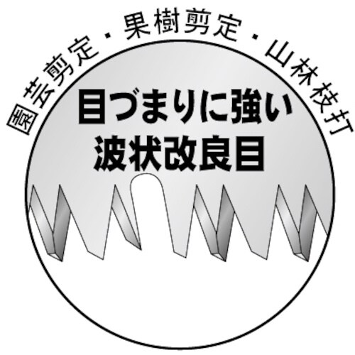 目づまりに強い波状改良目です。園芸剪定・果樹剪定・山林山打ち用。 |