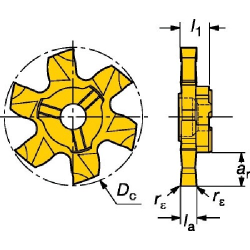 多くのタイプの溝入れ加工、ねじ切り加工および面取り加工に対応する汎用カッターのチップです。チップブレーカは、高硬度材 (ISO H) を除くすべての被削材に適用します。フライスでの溝入れ加工用。 |