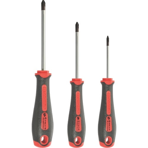 セット内容(本):3 | セット内容:[[+]]No.0、1、2 | グリップ色:赤、黒 | 刃先:ブラックチップ精密加工 | その他仕様:クロムメッ…