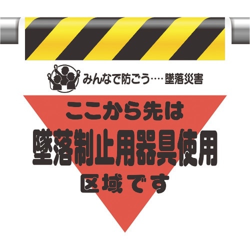 表示内容:みんなで防ごう・・・墜落災害 ここから先は 墜落制止用器具使用 区域です | 取付仕様:裏面マジックテープ式 | 縦(mm):600 | 横…