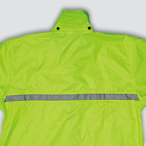背中の視認性を考慮し、太めの反射テープを装備。ハードな環境を想定した、多機能なワーキングレインウエアに仕上げました。通勤、通学、作業、アウトドアに。