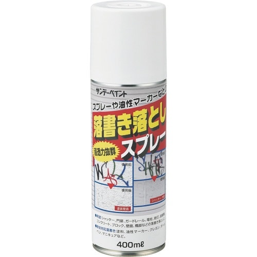抜群の浸透力でスプレーなどの落書きを簡単・強力に落とします。水性、油性塗料、油性マーカー、クレヨン、ボールペン、マニキュアなど幅広い落書きに対応します。フロンガスや鉛含有物を使用していません。 |