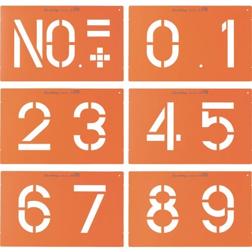 測量時や工事時のマーキングによく使われる文字や記号を豊富にご用意しています。耐久性と耐溶剤性に優れたポリプロピレン製のプレートです。折り曲げられるので局面へのマーキングも可能です。 |