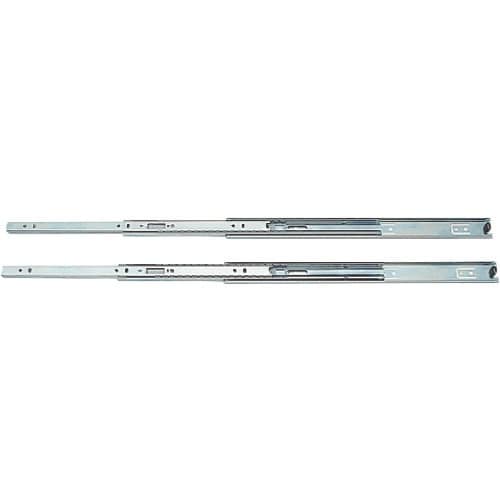 レール長さ150mmタイプが新しく加わりました。インナーメンバーを完全に引き出せる3段引きのスライドレールです。レールを全閉にした時、閉じた状態を保持する簡易的なキャッチ機能付きです。