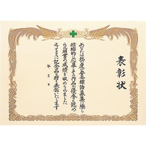 工事現場や工場等での安全表彰用に最適です。緑十字、表彰文言入りで使いやすいです。工事現場、工場等での安全表彰に。 |