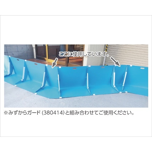 | 注意事項 | ※当商品単体でご使用はできません。冠水した水の重みで止水される構造となっていますので、風が強い状況下では飛ばされる危険性があります。土のうや水の入ったペットボトル等の重りや、ロープで建物と固定する等の処置をしてください。津波・高潮発生時には使用しないでください。使用後は全体を水で洗い、乾燥させてから収納してください。 |