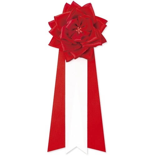 式典の記章です。一般的に赤か桃を招待客、白が主催者側になります。