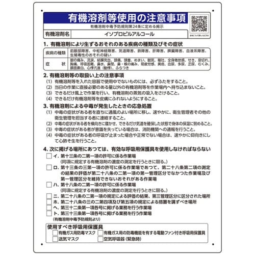 表示内容:有機溶剤等使用の注意事項 イソプロピルアルコール | 取付仕様:ビス止め、両面テープ止め | 縦(mm):600 | 横(mm):450 |…