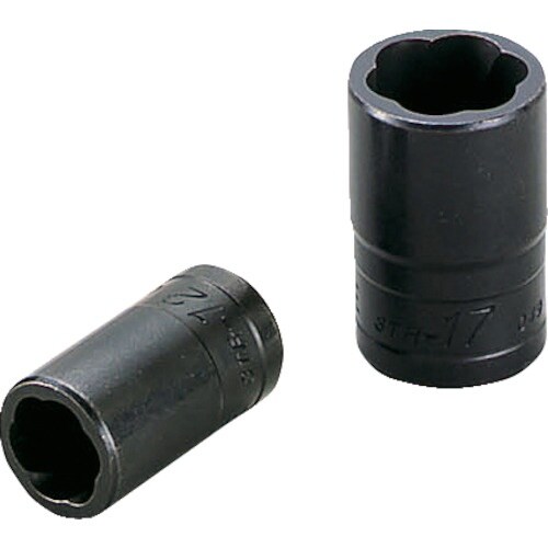 ボルト・ナットの六角部がひどくナメたり、さび付いたりしてソケットやめがねレンチでは回せない時でもしっかり喰い込み回すことができます。右ねじ緩め専用(左回転専用)です。 |