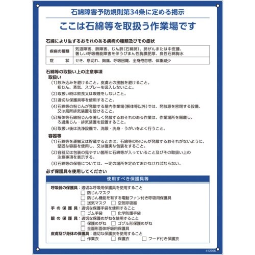 | 注意事項 | ※解体等の作業場ではない場合は、412005をご使用ください。 |