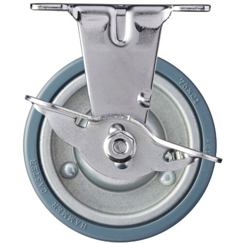 許容荷重(daN):40 | 車輪径D(mm):75 | 車輪幅(mm):21 | タイプ:固定式(ストッパー付き) | 取付座(mm):70×42 …