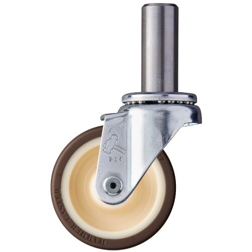 荷重に対する抵抗力が大きく、旋回もスムーズな代表的な差込みキャスターです。使用例:工場や店舗、事業所などのさまざまな環境で幅広く使用されています。 |