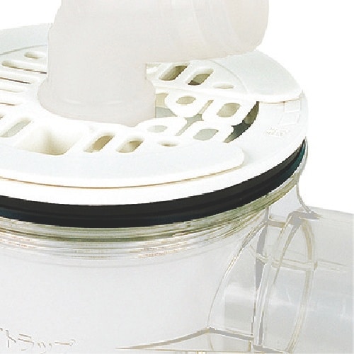 エルボを差込むとカチッと音がして接合状態が分かりやすく、漏水防止と点検がさらにスムーズです。本体外側が透明で、検査時に床下点検ができます。目皿は簡単に取外し、掃除ができます。 |