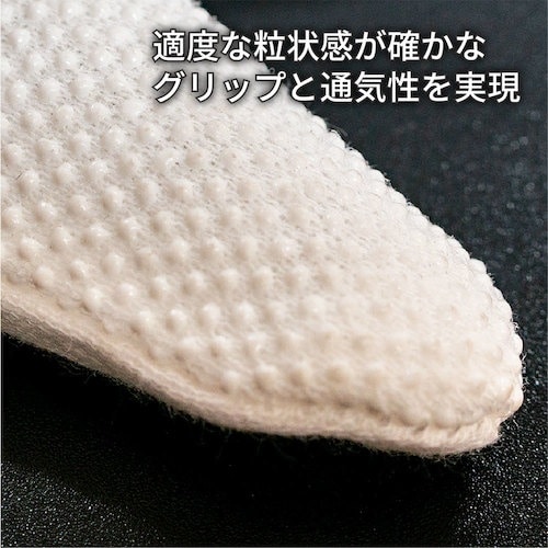 綿100%の生地を使用して作られた「滑り止め付き」作業白手袋です。吸汗性に優れ、毛羽立ちの少ない質感。きめ細かな滑り止めのドットが程よいグリップ感を生み出し使用感を高めています。 |