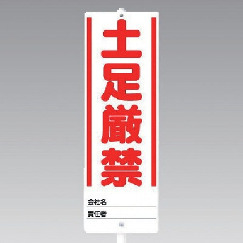 表示内容:土足厳禁(会社名・責任者) | 摘要:穴5mmΦ穴上1・下1 | その他仕様:標識止めビス2個付 | 寸法(mm):標識・450×150×2…