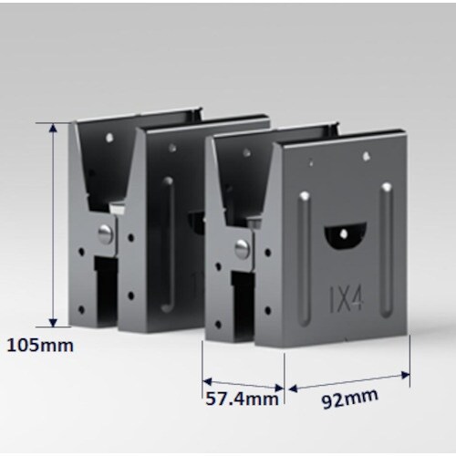 幅(mm):92 | 奥行(mm):57.4 | 高さ(mm):105 | 色:黒 | 取付穴数(個):12 | 適合木材:1×4 | その他仕様:カ…