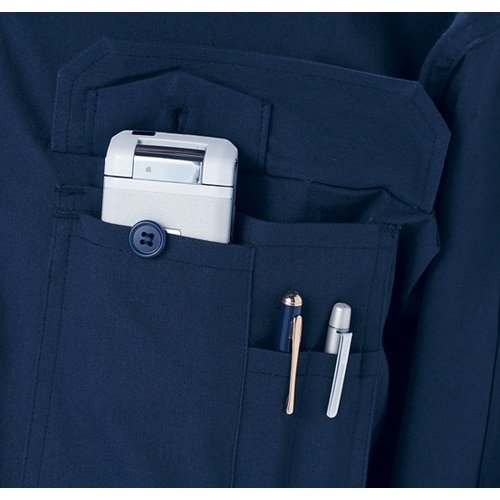 防炎性に優れ、自己消火機能を装備している生地を採用しています。この商品はJIS(日本産業規格)T8118(静電気帯電防止作業服)の規定に基づき製造され、その規格をクリアーしています。火を使う現場に。 |