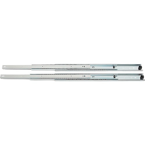 インナーメンバーを完全に引き出せる3段引のスライドレールです。レール全閉時に、その状態を簡易的に保持します。中間メンバーとインナーメンバーが順序よく開閉するシーケンシャル機構付です。 |