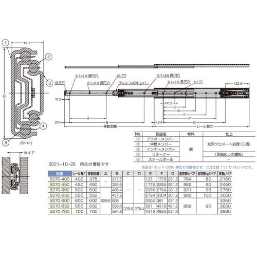 | 注意事項 | ※スライドレールは1つの筐体に対し、同じシリーズ内よりお選びください。インナーメンバーとアウターメンバーの組み合わせを変えないでください。収納時よりもさらに押し込まれないよう、ストッパーをつけてください。 |