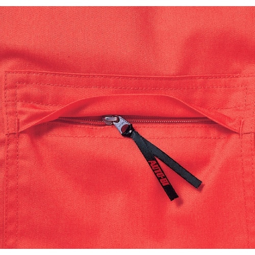 携帯電話がすっぽり入りポケットを胸ポケットとは別にご用意しています。立体裁断を施すことにより、各部が動きやすくなっています。自動車整備などに。作業全般に。