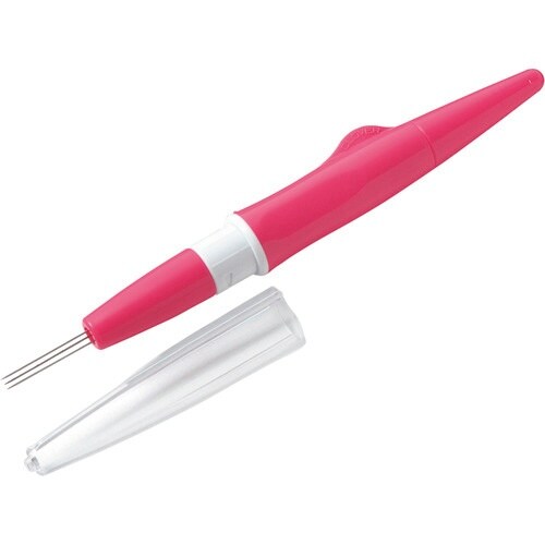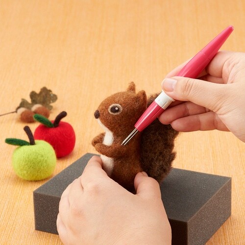 小さなモチーフや細かいラインも思いどおりにできます。フェルトパンチャーは使いやすさや安全性にこだわった、羊毛フェルト手芸の専用ツールです。作品がスピーディに仕上がる3本針タイプです。 |