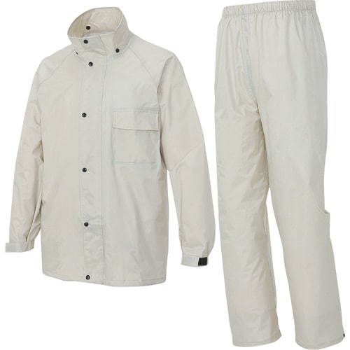 上着・ズボンの裾の折返しが深く水の逆流を防ぎます。上着の前立ては水切り2枚の3層構造で水の浸入を防ぎます。上着背部反射テープ付きです。フードひさしは周囲が見える透明ビニール仕様です。 |