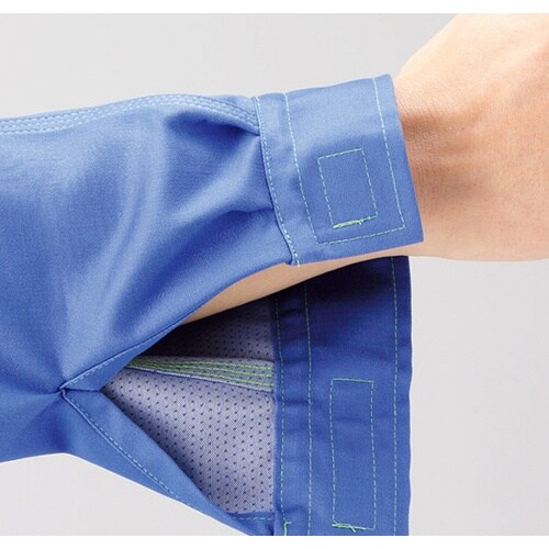 特殊カッティング「ムービングカット」で腕の上げ下ろしがスムーズです。帯電防止素材使用です。自動車整備などに。作業全般、他。