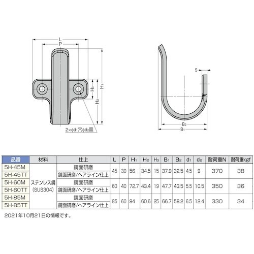 SUGATSUNE (110028557)5H−85Mステンレス鋼製フック