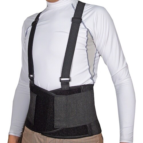 デュアルベルト(2重ベルト)とプラチックスティックで腰を支える。ショルダー付き。