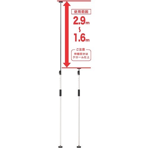 仮止め、接着、圧着など色々な用途に使える突っ張り棒です。天井の作業補助や車荷台の荷崩れ防止に。住宅、ガレージの収納、ディスプレイに。 |