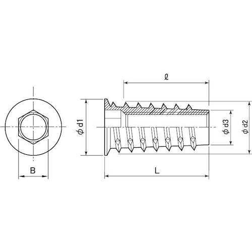 寸法(mm)d:M6 | 全長(mm):13 | その他仕様:木工用埋め込みナット | 材質・仕上げ:亜鉛合金ダイカスト | 表面処理:亜鉛メッキ三価…