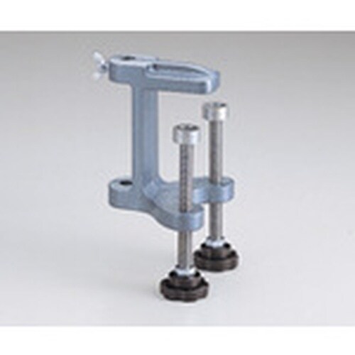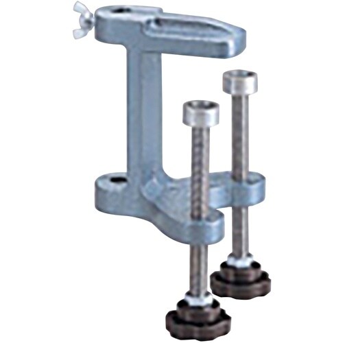 2本のボルト付きですので、試験台などの上にスタンドを組む際に組立棒を深く固定して試験台の縁に確実に取り付け可能です。 |