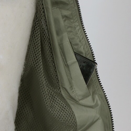 左胸に反射ワッペンを配置し、視認性高めているので夜間のウォーキングなども安心です。小物や身の回りの品の収納に便利な内ポケットも装備しています。左袖にペン挿しポケットを装備。