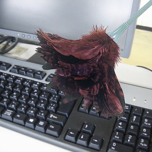 やさしくホコリを払い取る。鳥の尾羽を使用。 |