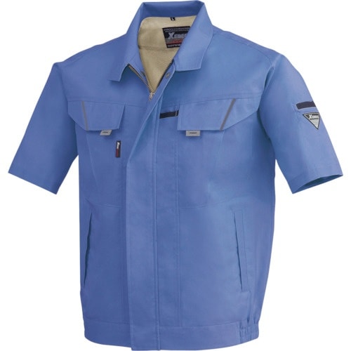 ジップアップ仕様に、前タテ上下を隠しボタンにして、フラットデザインにした帯電防止作業服です。胸ポケットのフラップ部分に、視認性・安全性を高める反射材をお洒落にパイピングしています。 |