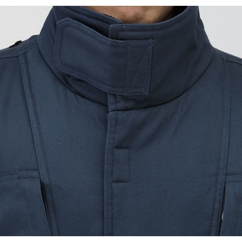 表地:綿100%の防寒つなぎ服です。上半身内部には保温性抜群のアルミキルティングを採用しています。寒冷地での作業などに。