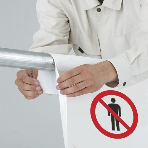 JIS規格に準拠したワンタッチ取付標識です。マジックテープ固定なので単管パイプ(48.6mmφ)、コーンバー等へ簡単に設置できます。工場、一般施設、工事現場等への設置に。 |