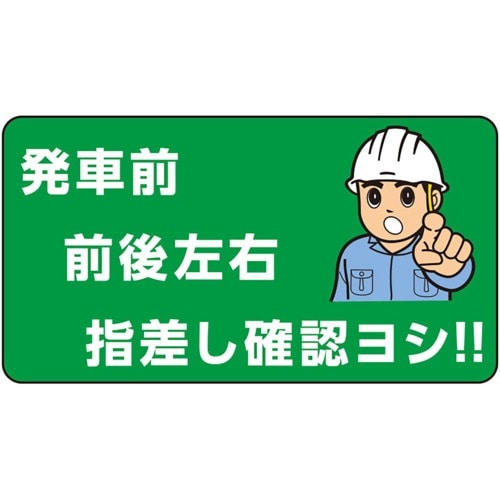 表示内容:発車前 前後左右 指差し確認ヨシ!! | 取付仕様:粘着ステッカー | 縦(mm):70 | 横(mm):130 | その他仕様:片面表示 …