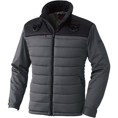 フルハーネス対応の裏アルミ防風防寒ブルゾンです。ストレッチ素材で、袖部分には中綿が入っていないため動きやすさバツグンです。高所作業に。防寒着に。外作業に。アウトドアに。普段着に。