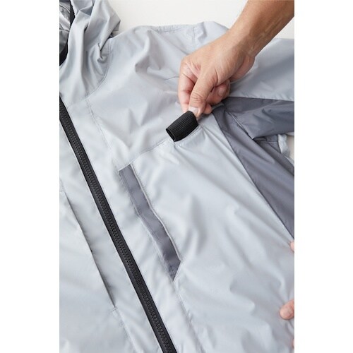 軽量ポリエステル素材を使用したストレスフリーな着心地です。高い紫外線カット率で日焼けを防止します。裏側シルバーコーティングの遮熱生地を使用しています。運転などの動作を妨げない横付ファン仕様です。
