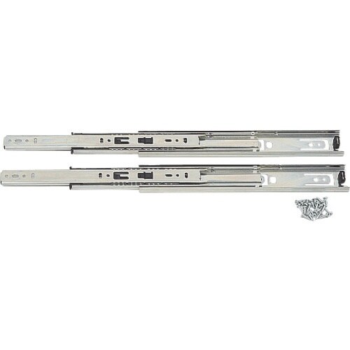 インナーメンバーを完全に引き出せる3段引のスライドレールです。レバー操作でインナーメンバーを取り外せます。レール全閉時にその状態を簡易的に保持します。
