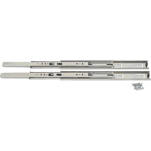 インナーメンバーを完全に引き出せる3段引のスライドレールです。レバー操作でインナーメンバーを取り外せます。レール全閉時にその状態を簡易的に保持します。