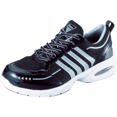耐油性ゴム底です。踵部分に衝撃吸収用のエアクッションを採用しています。ひもポケを採用し靴ひもの引っ掛かりや緩みを防止します。一般作業。 |