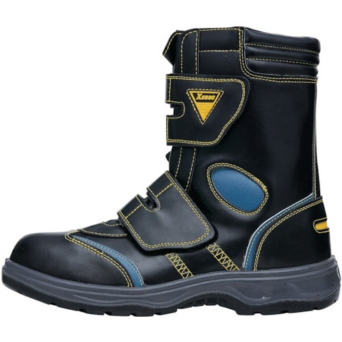鮮やかなカラーステッチが、黒ベースのハイカットモデルをスタイリッシュにデザインアップします。サイドの青いワンポイント部分には、くるぶしをガードするクッション材が入っています。 |